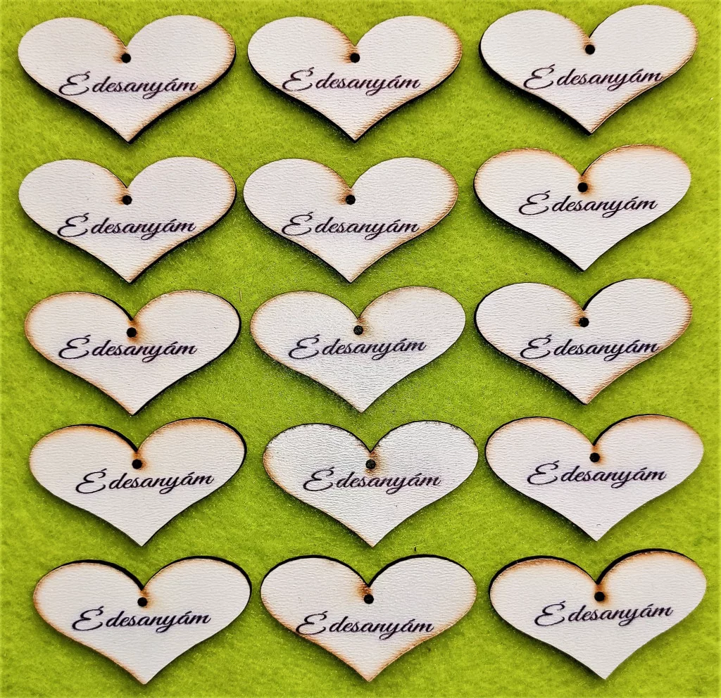 Nyomtatott Fa Szív Édesanyám felirattal 15db/csomag 5x3cm
