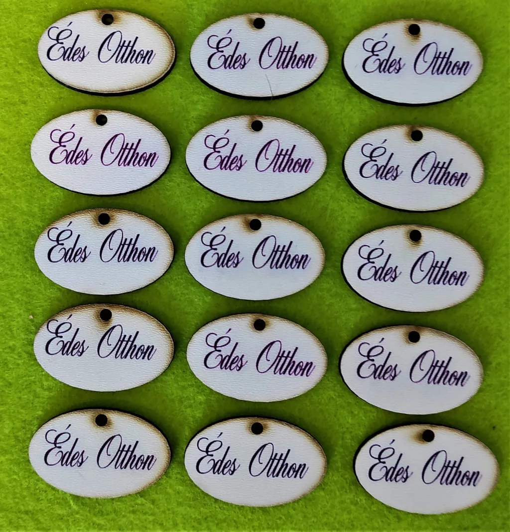 Nyomtatott Fa Kicsi ovális tábla Édes Otthon Felirattal 15db/ csomag 4x2,5cm
