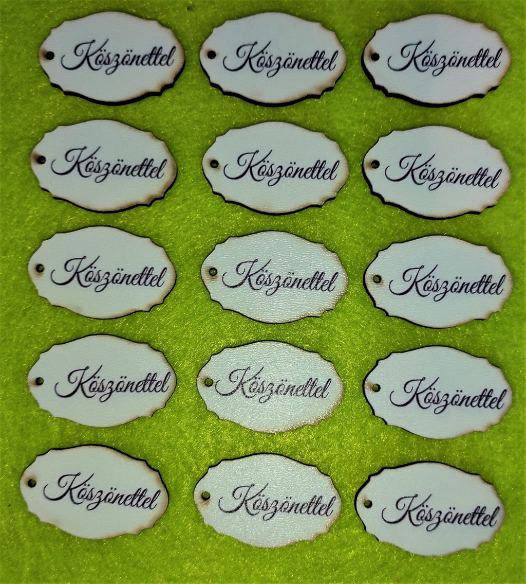 Nyomtatott Fa Kicsi tábla Köszönettel Felirattal 15db/ csomag 4x2,5 cm
