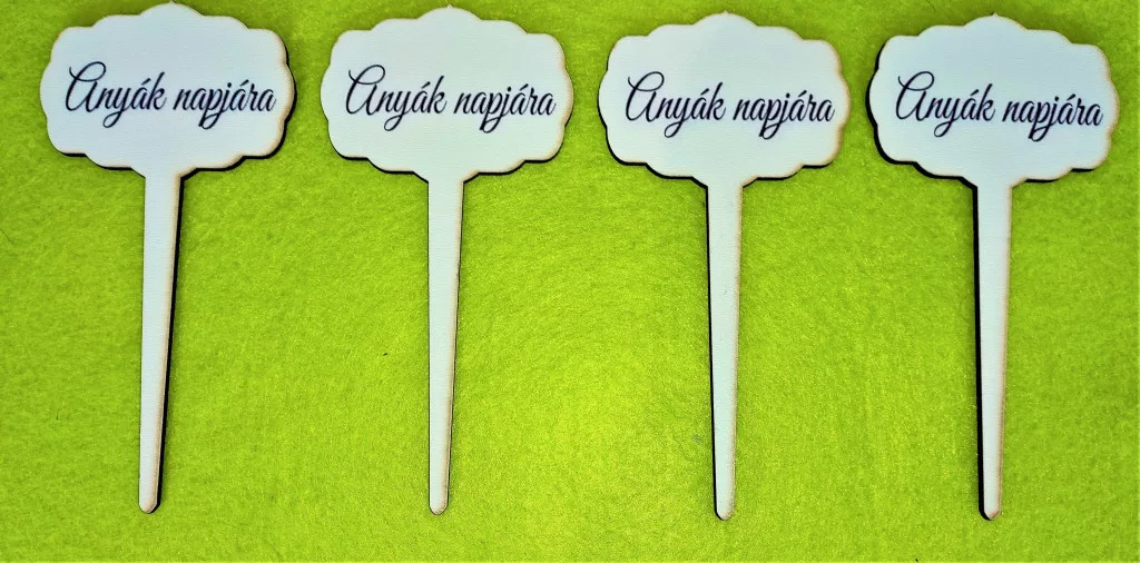 Nyomtatott Fa Beszúrós tábla Anyák napjára Felirattal 4db!csomag 7x14cm