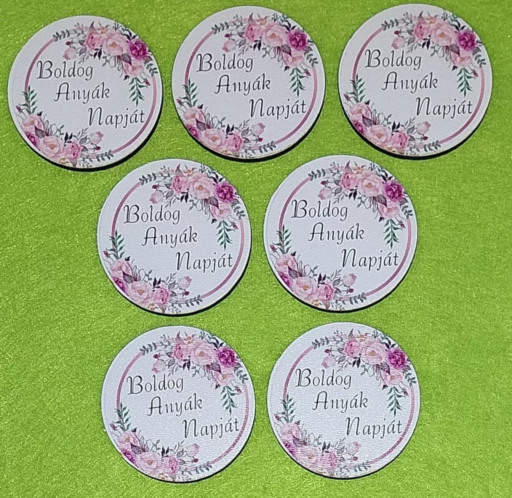 Nyomtatott Fa Kör Rózsaszín virágokkal Boldog Anyák Napját 7db/csomag 5cm