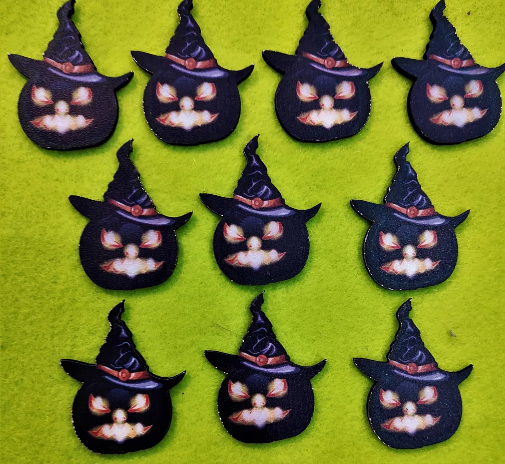 Nyomtatott fa fekete töklámpás boszorkány kalappal 10db/csomag 4x5 cm