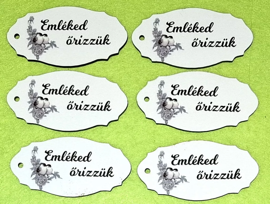 Nyomtatott fa Madárkás Emléked őrizzük felirattal 6db/csomag 8x4cm