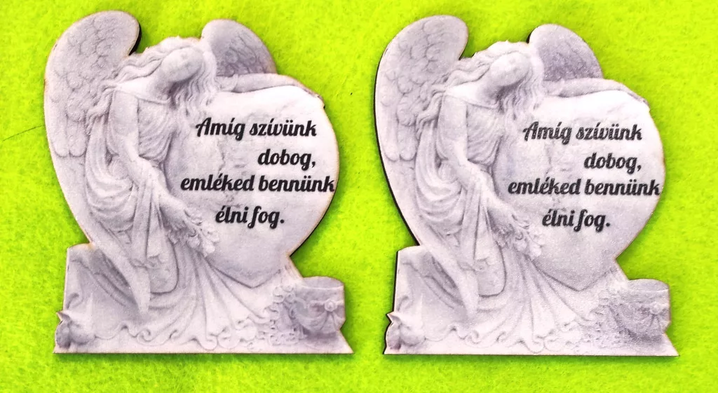 Nyomtatott fa Kőangyal szívvel Amíg szívünk ….... 2db/csomag 10x9cm