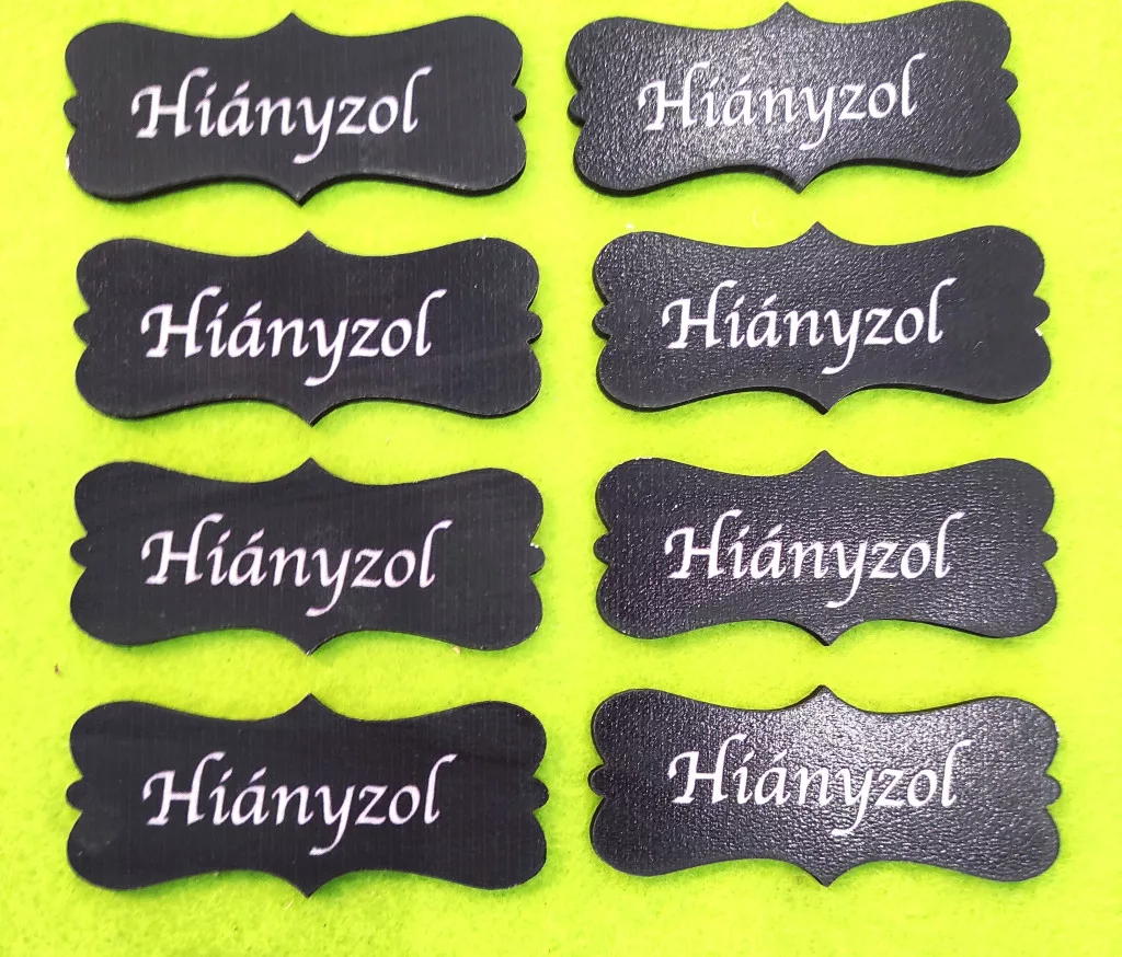 Nyomtatott fekete fa biléta Hiányzol felirattal 8db/csomag 7x3cm