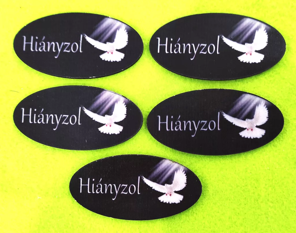 Nyomtatott fa fekete tábla galambbal Hiányzol felirattal 5db/csomag 8x4cm