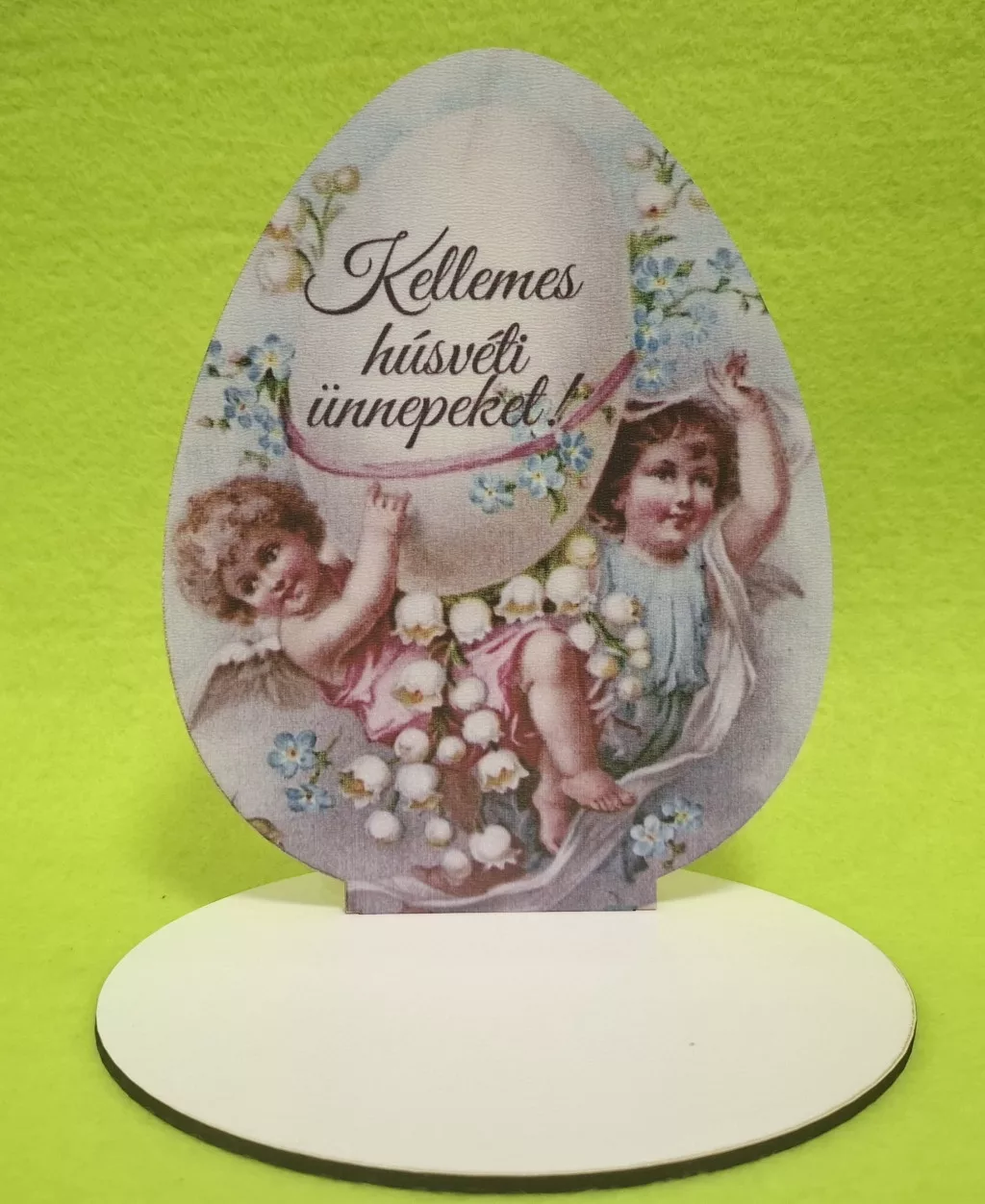 Nyomtatott fa Talpas Tojás ,Angyalkák tojással Kellemes húsvéti ünnepeket! 1 szett 12x16cm, talp 13x10