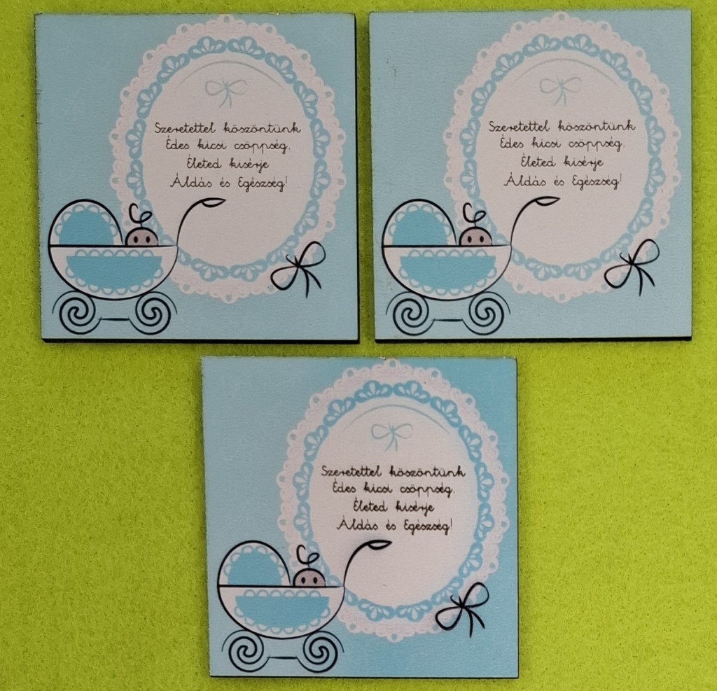Nyomtatott fa tábla Kék baba köszöntő 3db/ csomag 7x7cm