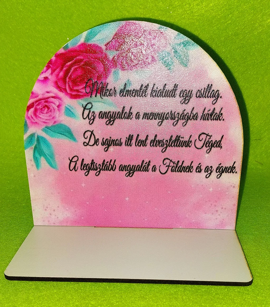 Nyomtatott fa Kicsi talpas Piros virágos tábla Mikor elmentél kialudt.......... 1szett szélesség13cm-12cm magasság Talp 13x7 cm,