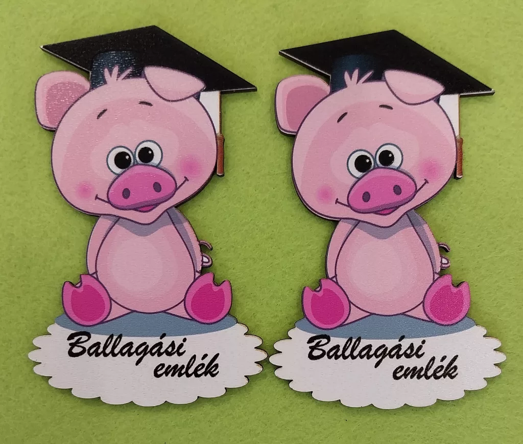Nyomtatott Fa Ballagó malacka Ballagási emlék felirattal 2db/csomag 8,5x11,5cm
