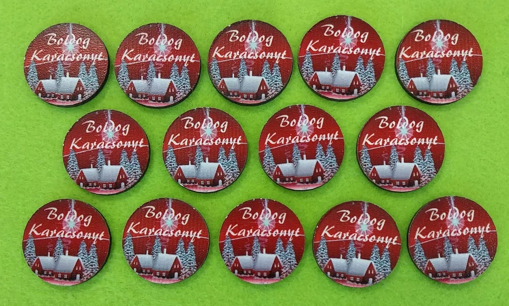 Nyomtatott Fa Kicsi Piros háttérrel Boldog karácsonyt felirattal 14db/csomag 3cm