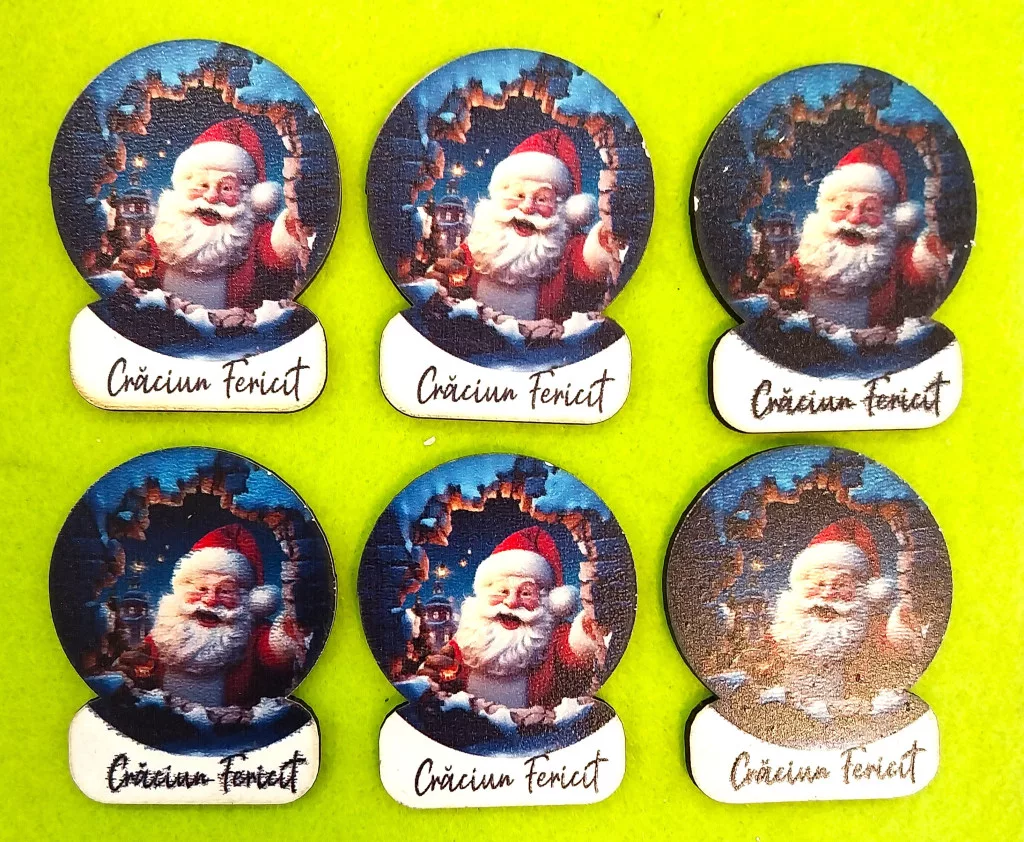 Nyomtatott fa Télapós Craciun Fericit felirattal 6db/csomag 4x5cm