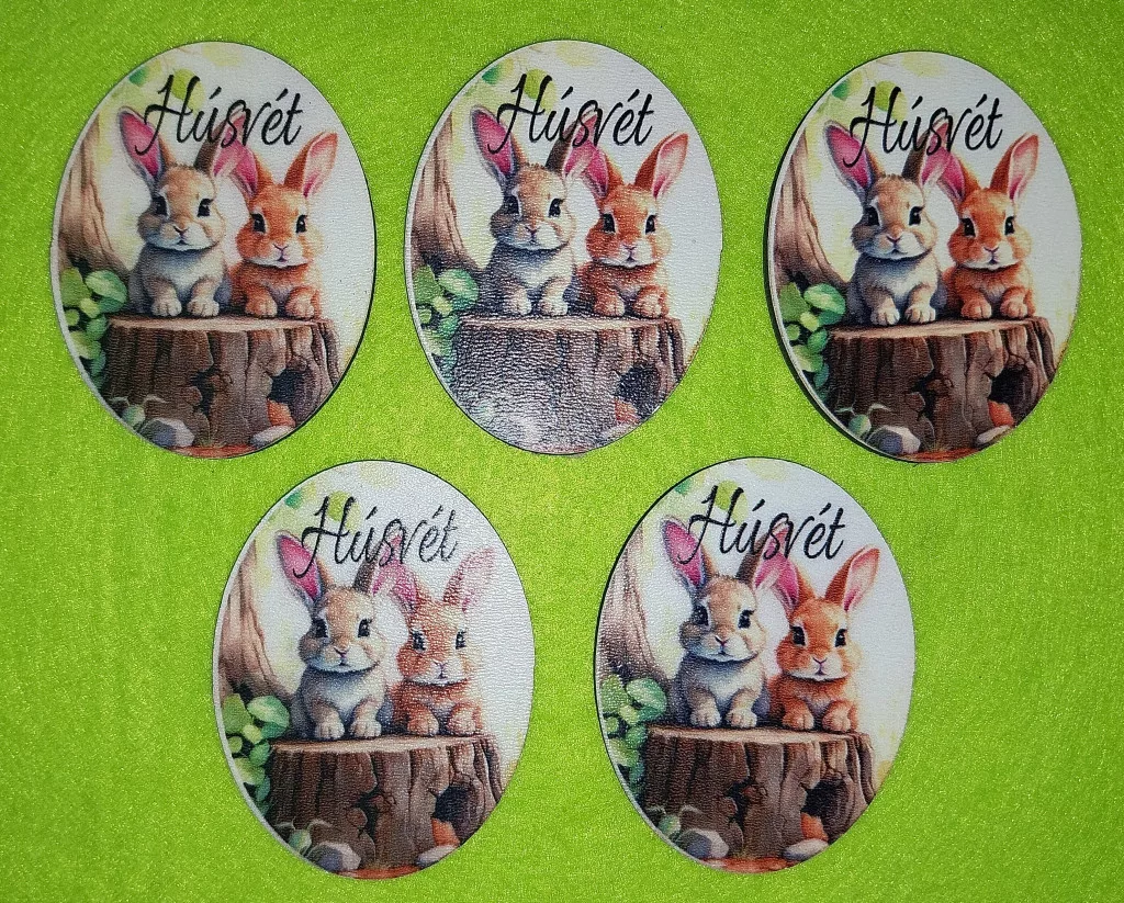 Nyomtatott Fa Nyuszkó pár Húsvét felirattal 5db/csomag 5x6,5cm