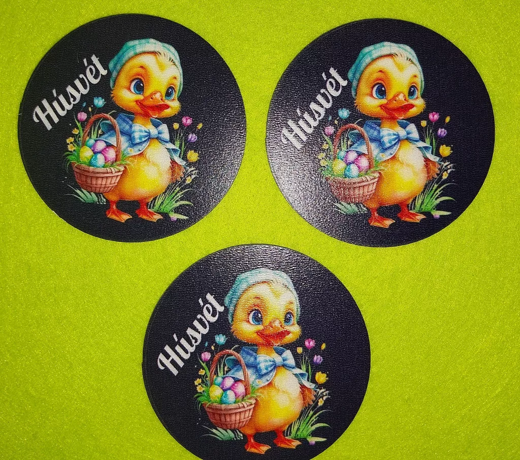 Nyomtatott Fa Kis kacsa fekete háttérrel Húsvét felirattal 3db/csomag 8cm