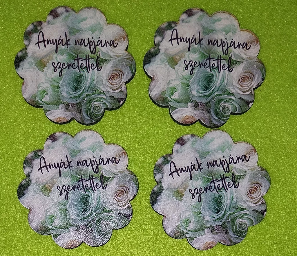 Nyomtatott fa tábla Zöld rózsás Anyák napjára szeretettel felirattal 4db/csomag 6cm