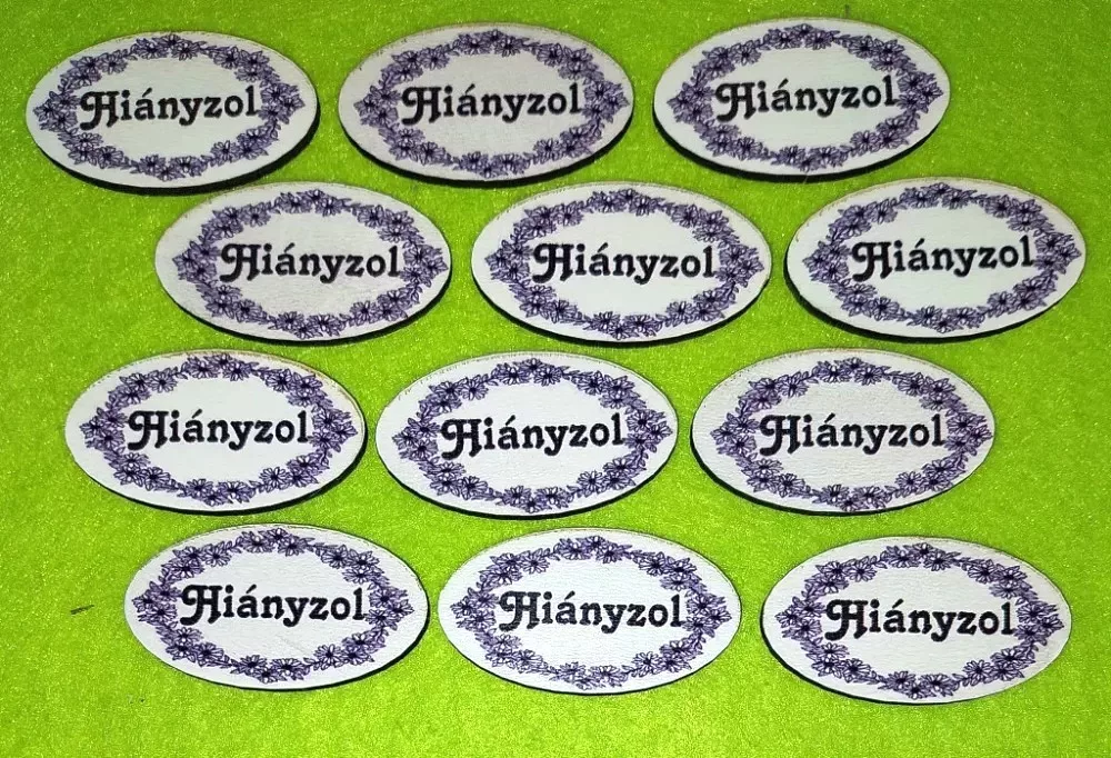 Nyomtatott fa Kicsi Fekete virág mintás ovális tábla Hiányzol felirattal 12db/csomag 4.5x2,5 cm