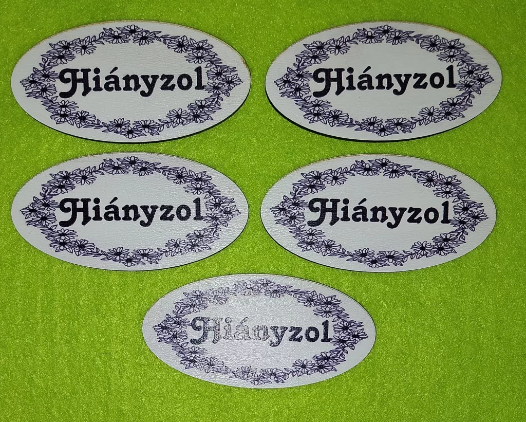 Nyomtatott fa Nagy Fekete virág mintás ovális tábla Hiányzol felirattal 5db/csomag 8x4 cm
